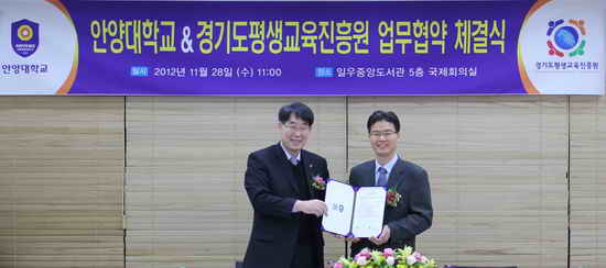 °æ±âÆò»ý±³À°ÁøÈï¿ø(¿øÀå À̼º)°ú ¾È¾ç´ëÇб³(ÃÑÀå¾÷¹«´ëÇà ÀÌÀº±Ô)´Â 28ÀÏ ¿ÀÀü 11½Ã Áö¿ªÀÎÀçÀ°¼ºÀ» À§ÇÑ ¾÷¹«Çù¾à(MOU)À» ü°áÇß´Ù.